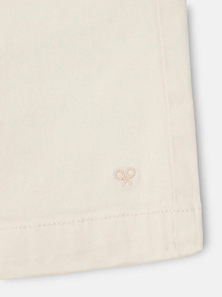 - Bermuda clásica confeccionada en mezcla de algodón de corte Regular fit. Presenta cierre con botón personalizado , cremallera y cordones ajustables trabillas en cintura y bolsillos delanteros y traseros. Cuenta con detalle de raquetas bordadas delanteras y traseras.