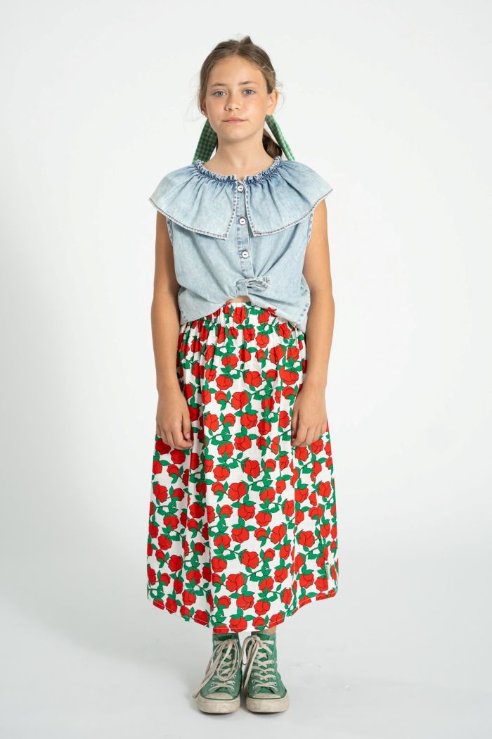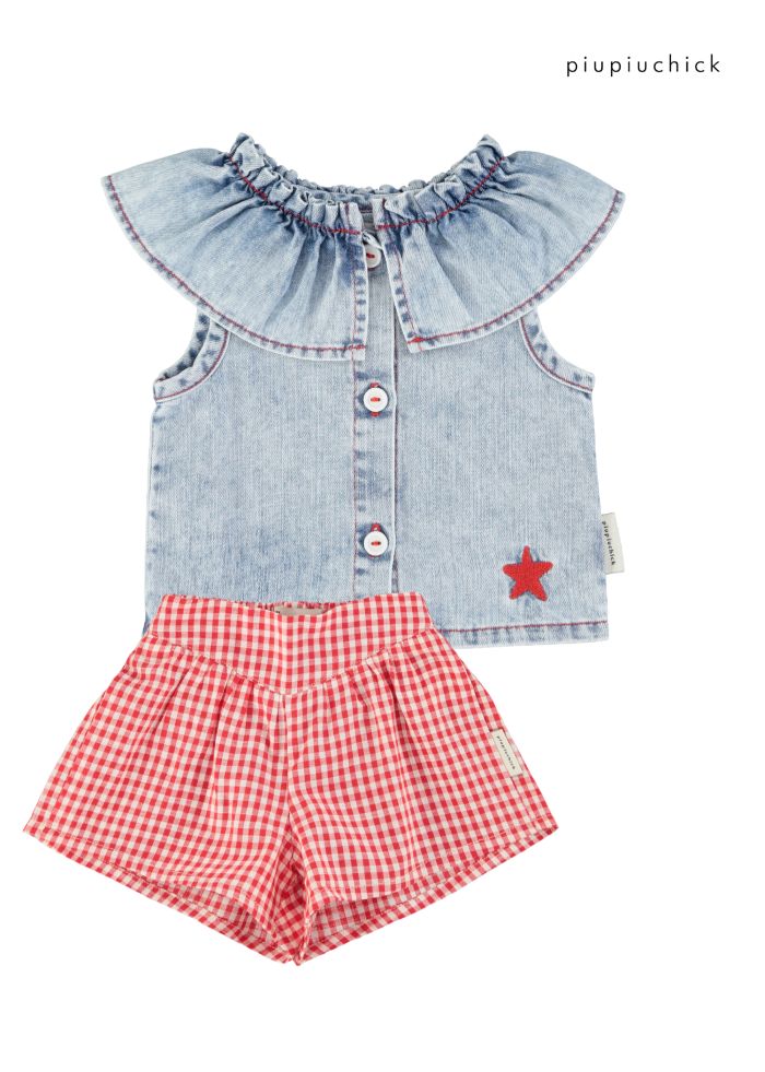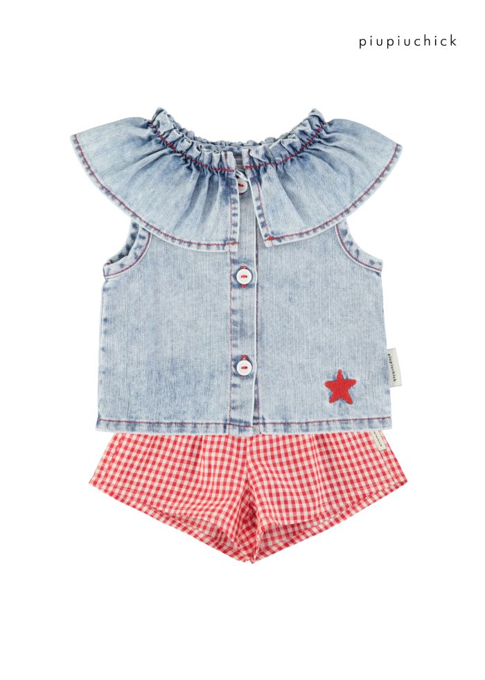 - Blusa niña sin mangas abotonada por delante en tejido denim.