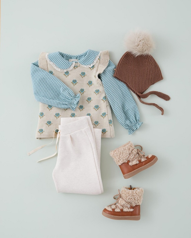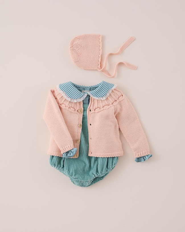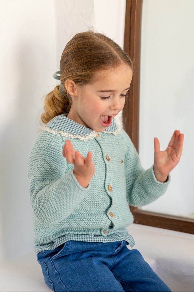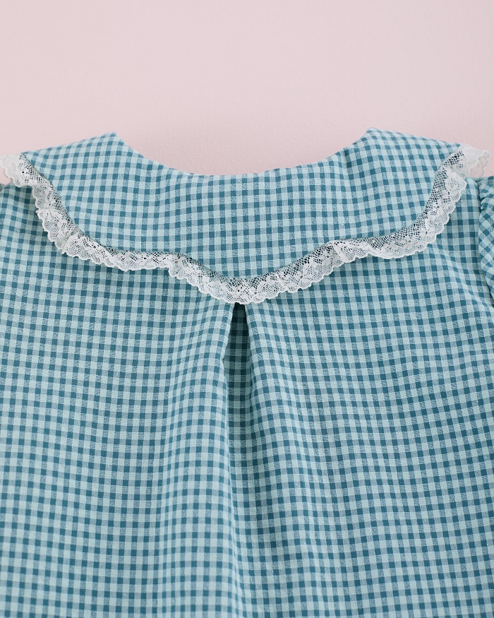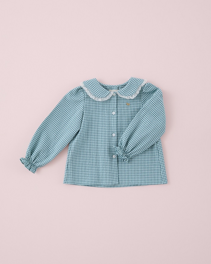 - Camisa de niña con puntilla de valencié confeccionada en tejido Minivichy Eucalipto.