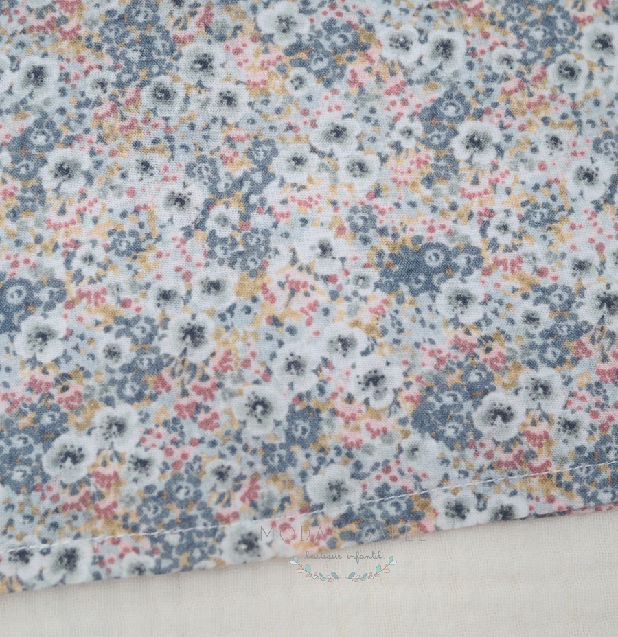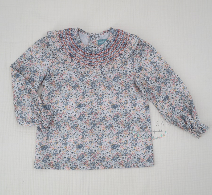 - Blusa con cuello volante de nido de abeja confeccionada en tejido liberty.