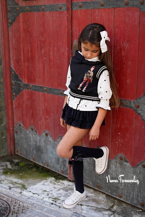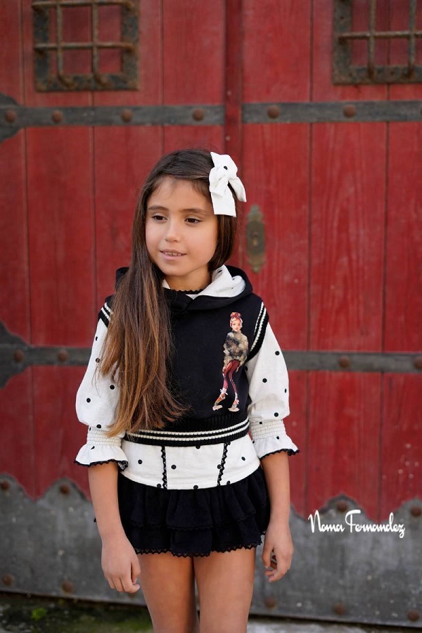 - Conjunto niña formado por blusa, chaleco y short-falda.