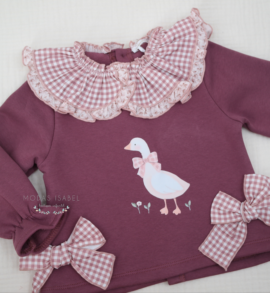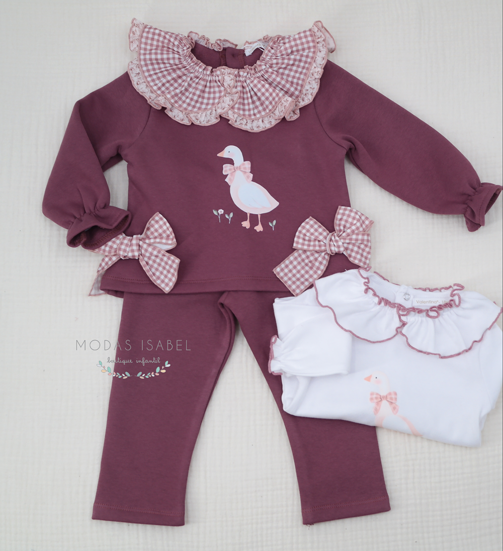 - Conjunto niña formado por sudadera, camiseta y pantalón.