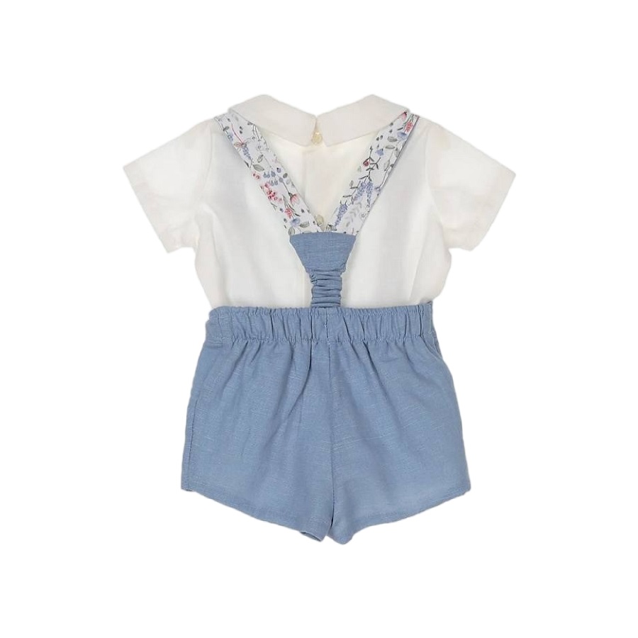- Conjunto bebé niño formado por blusa y nacho con tirantes.