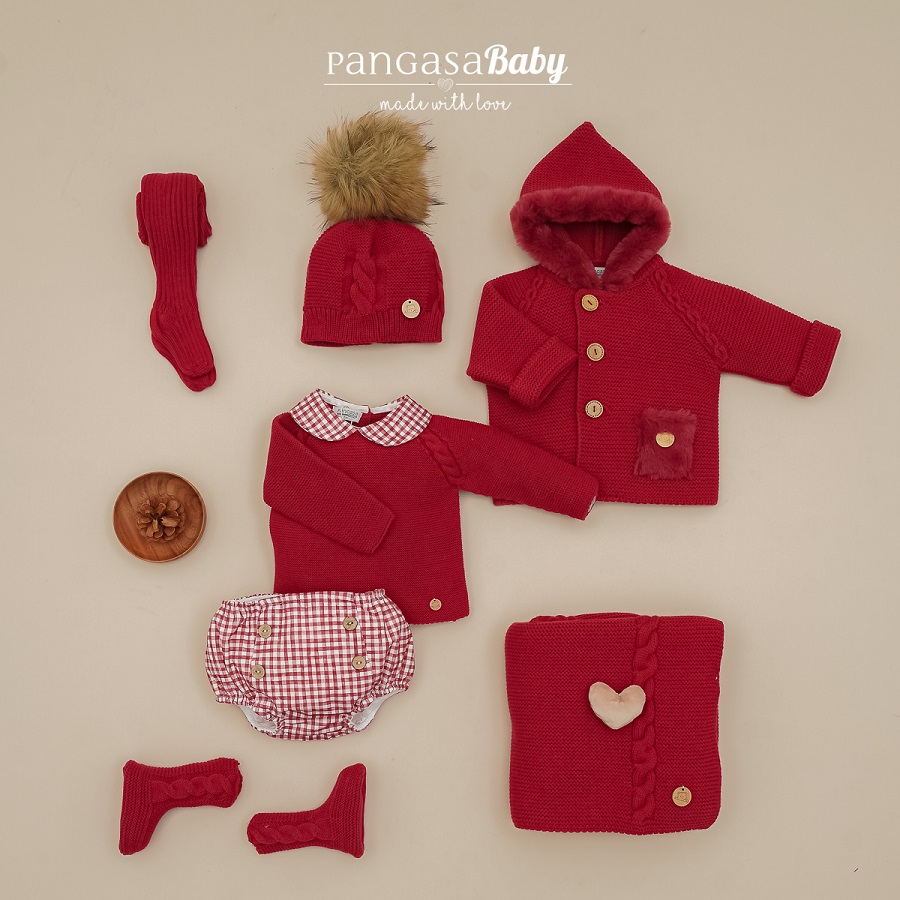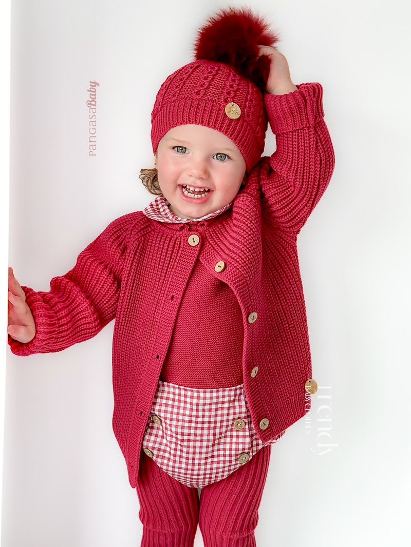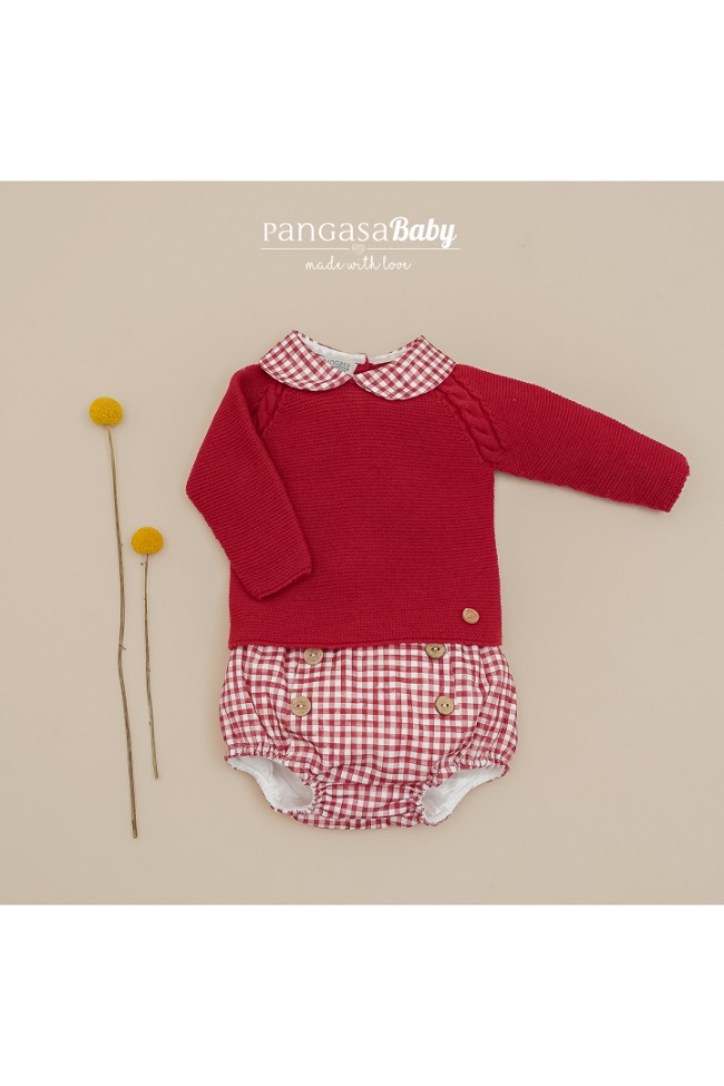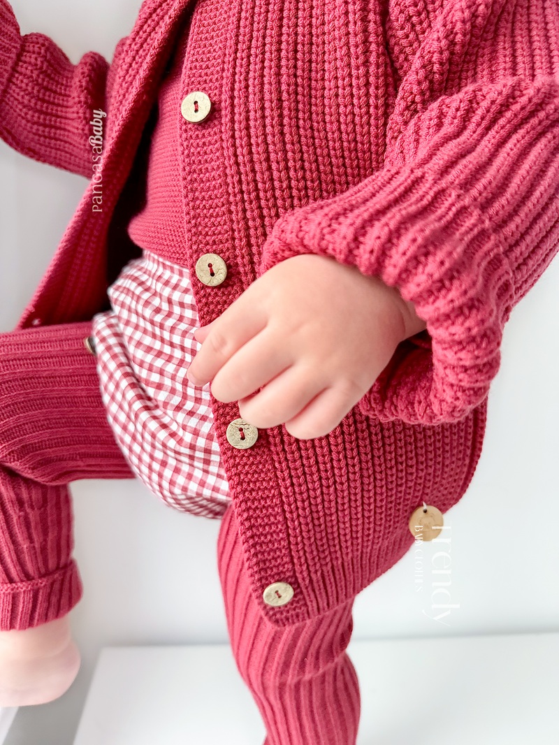 Conjunto Ranita Niño Vichy Granate Pangasa