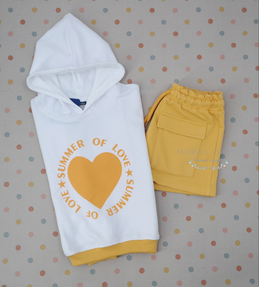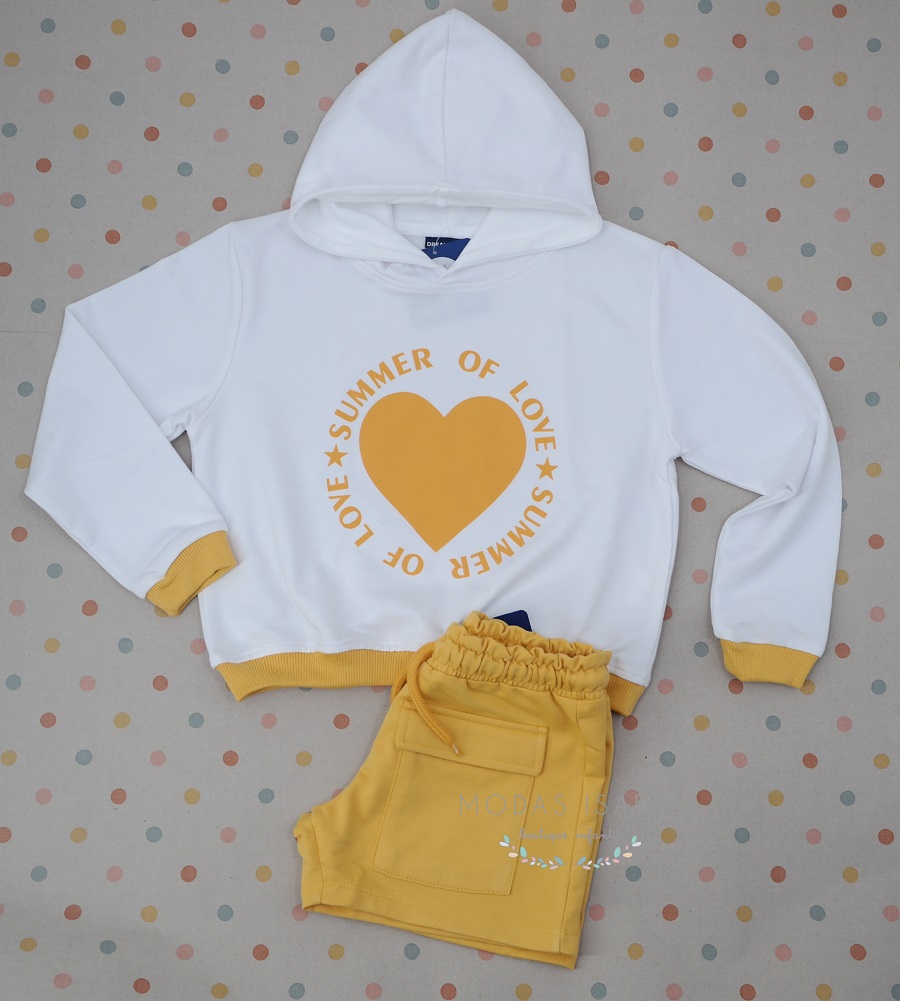 - Sudadera capucha algodón en color blanco con dibujo delantero de un corazón.