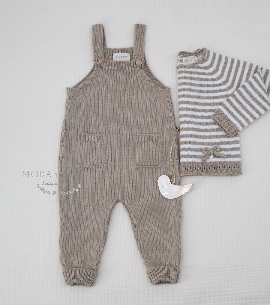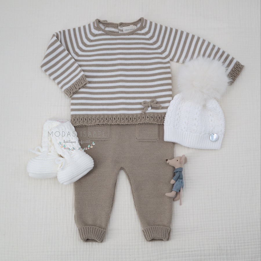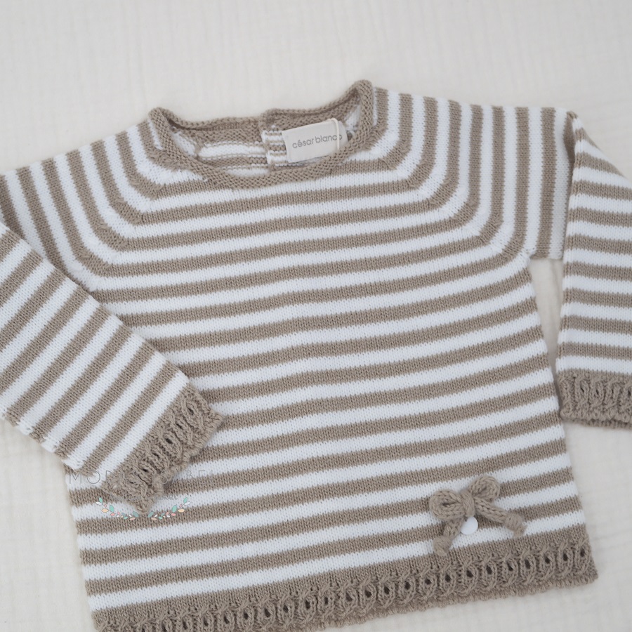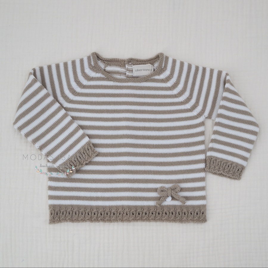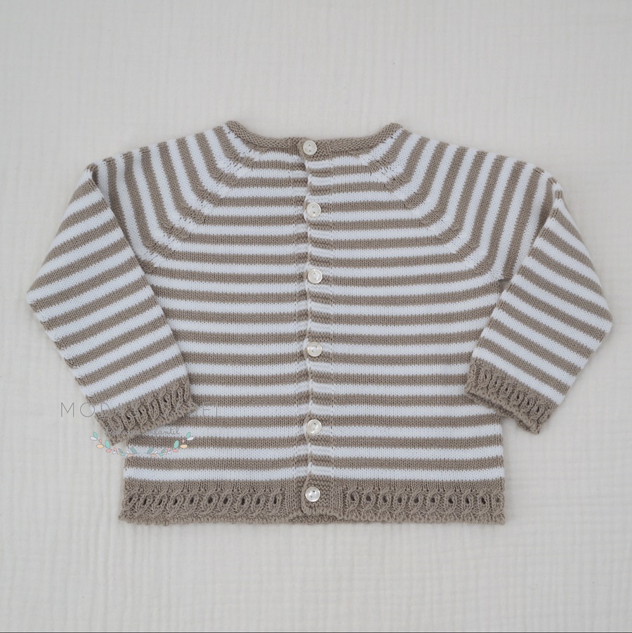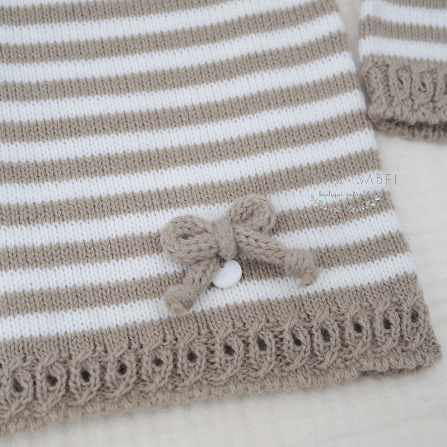 - Jubón unisex para bebé confeccionado en punto de la máxima calidad a rayas en tonos piedra y crudo.