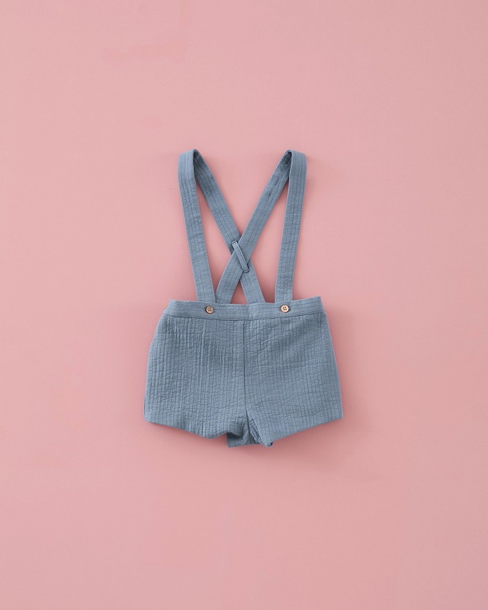 - Pantalón corto unisex con tirantes en tejido Twin Plomo.