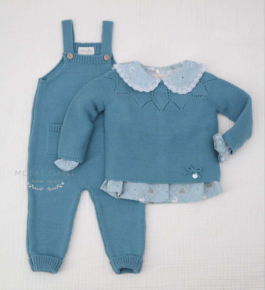 - Petito bebé unisex confeccionado en punto de la máxima calidad color agua.