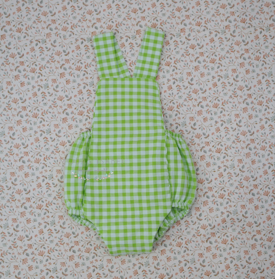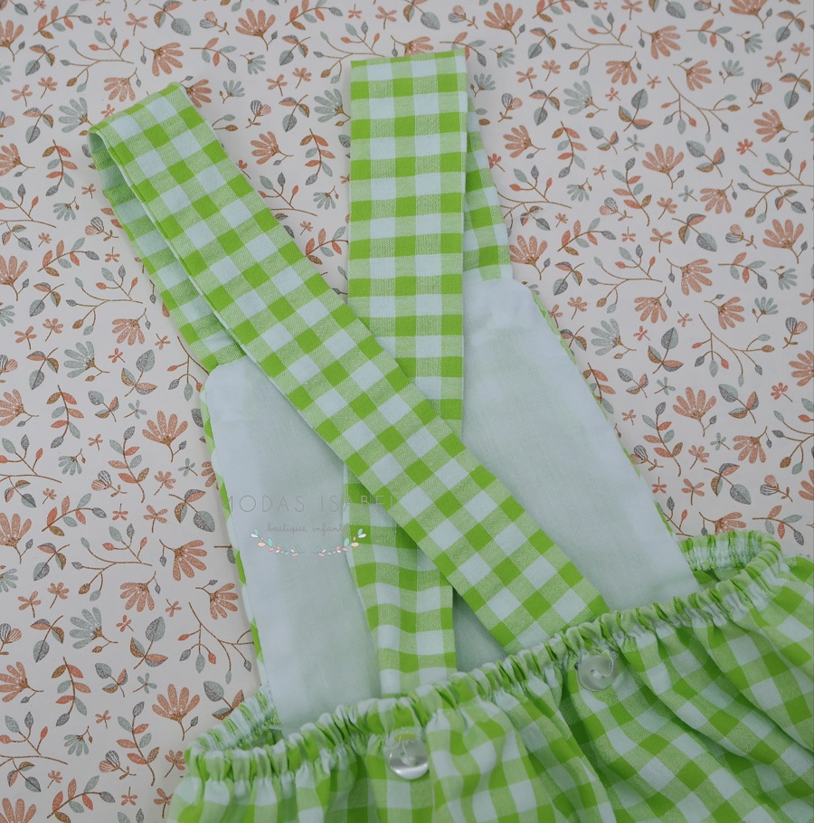- Petito bebé confeccionado en tejido vichy color verde flúor.