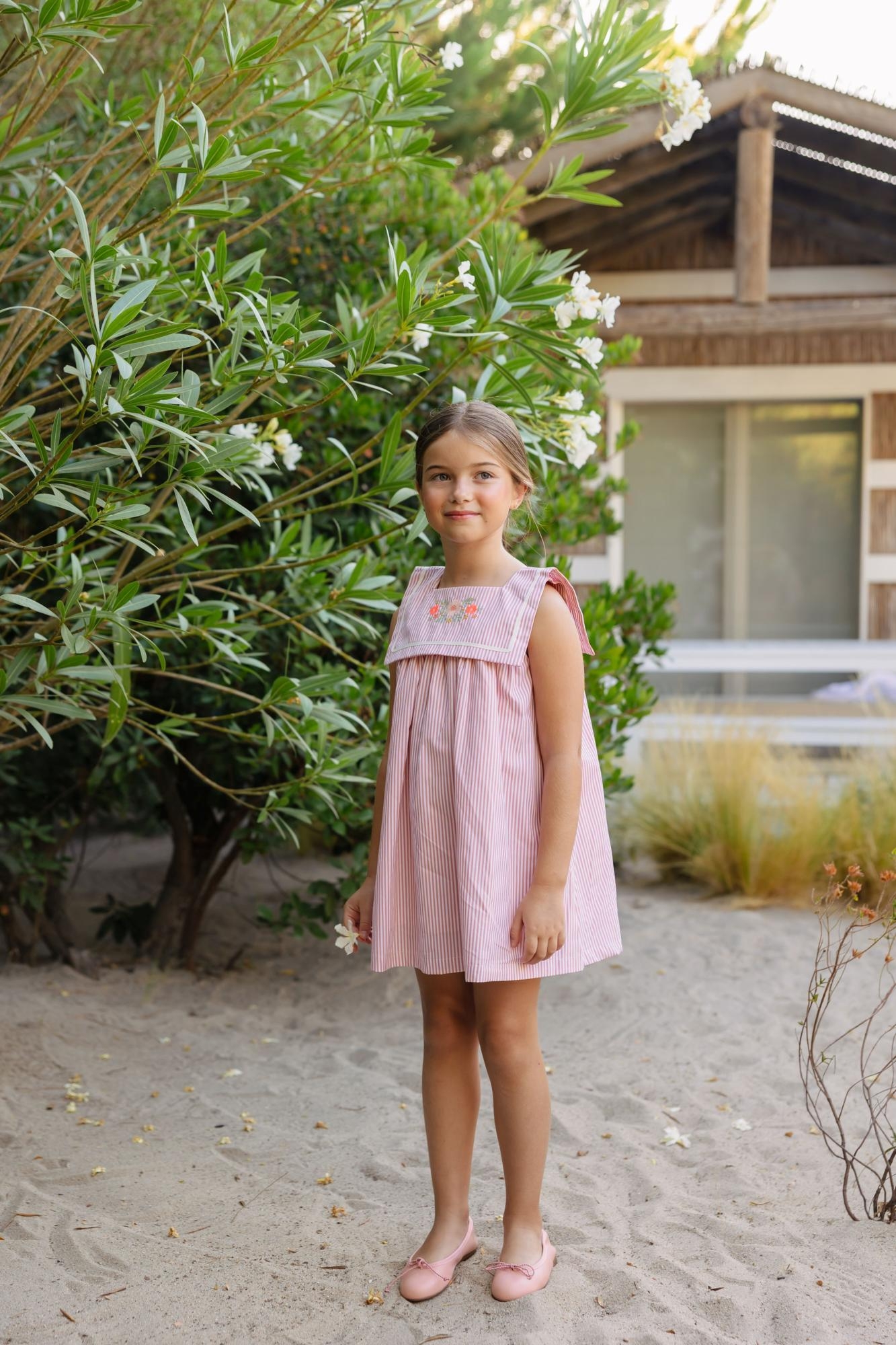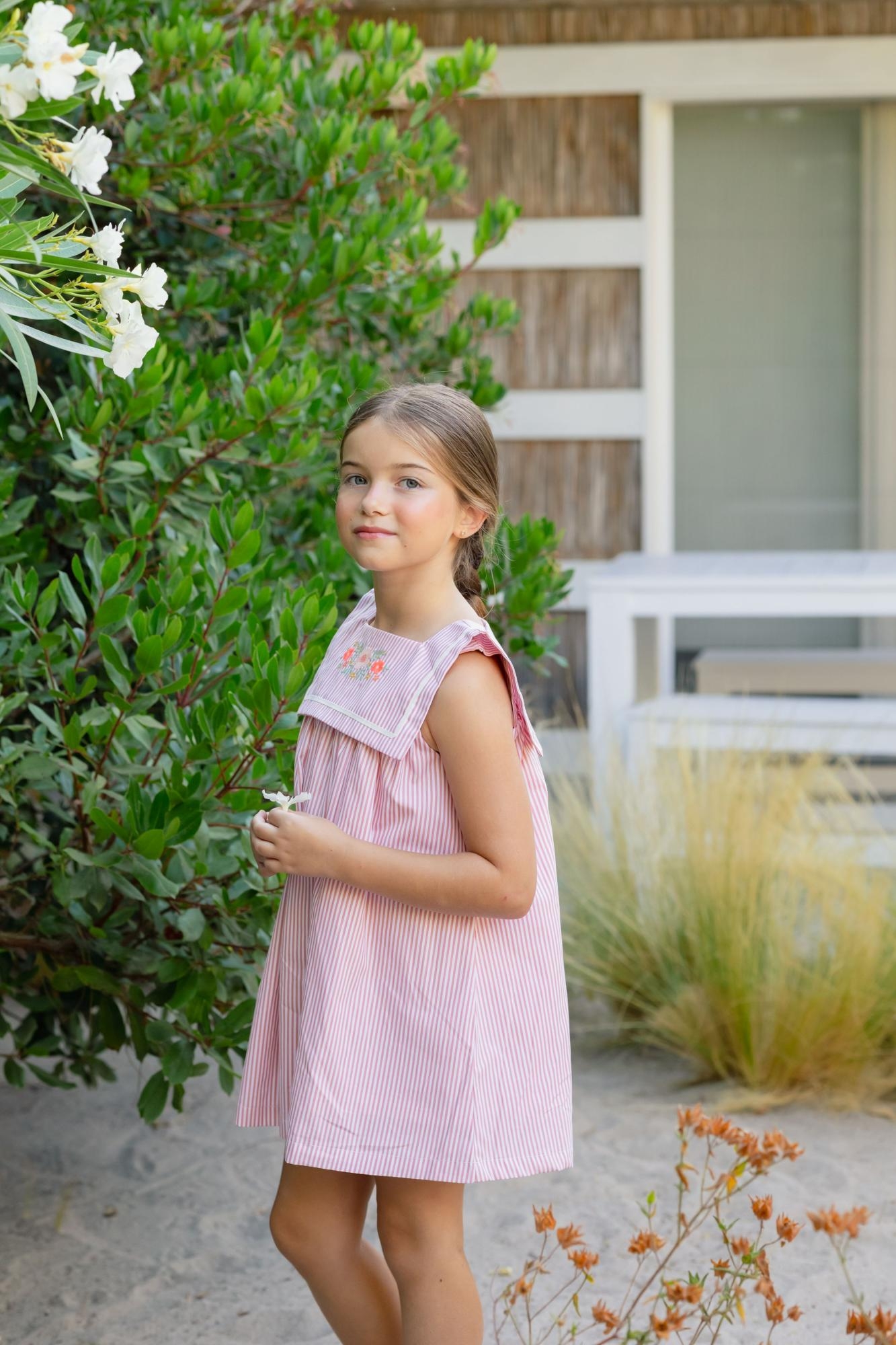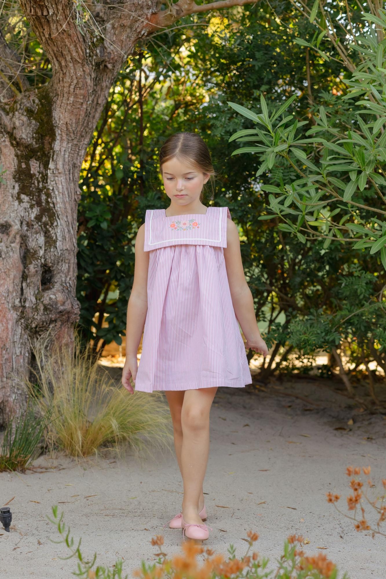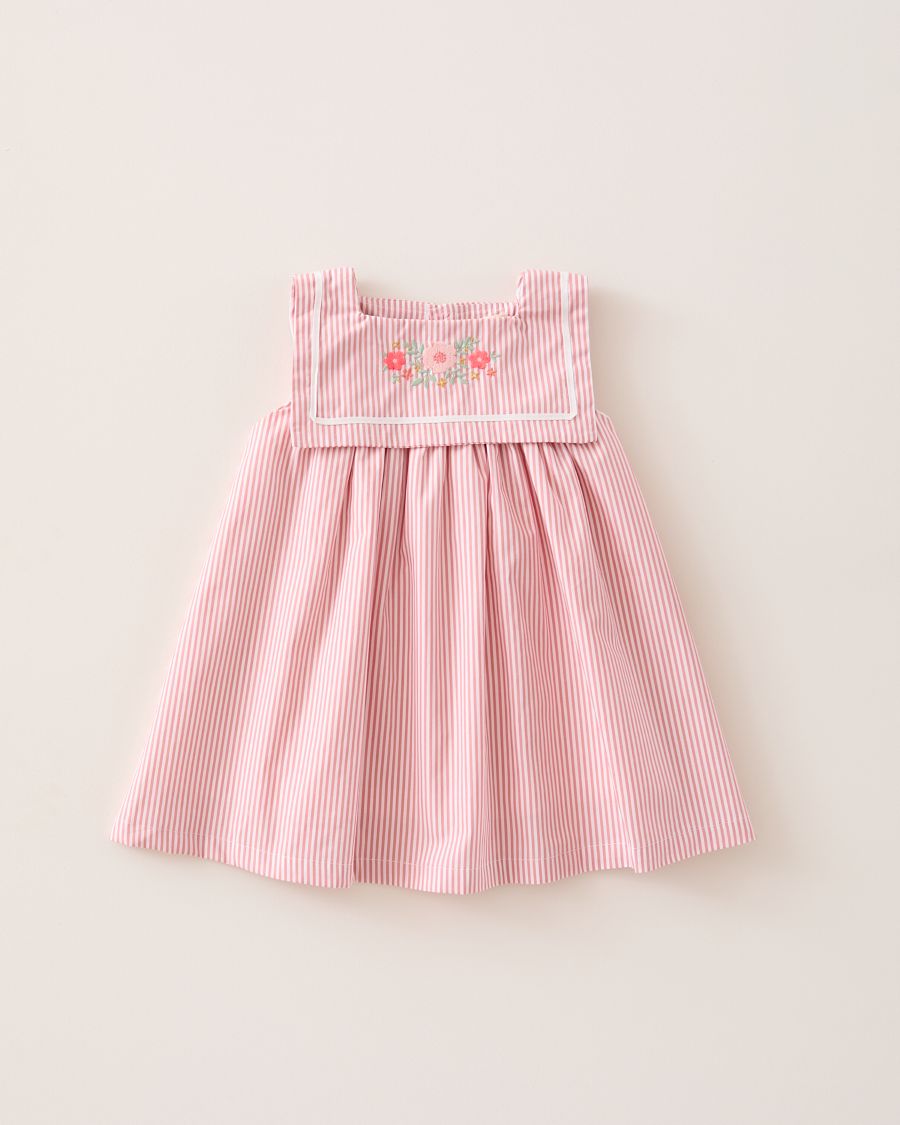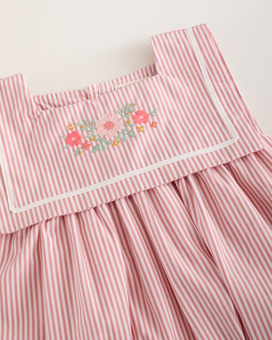 Vestido Bordado Marinero Rayitas Pink Mi Canesu